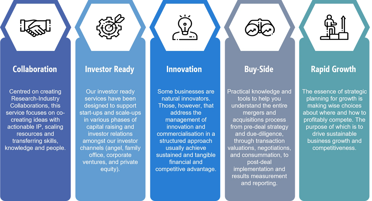 We relish engagements developing and executing novel business strategies that stimulate the financing, uptake, adoption, and commercialisation of emergent technologies in high-growth business models.